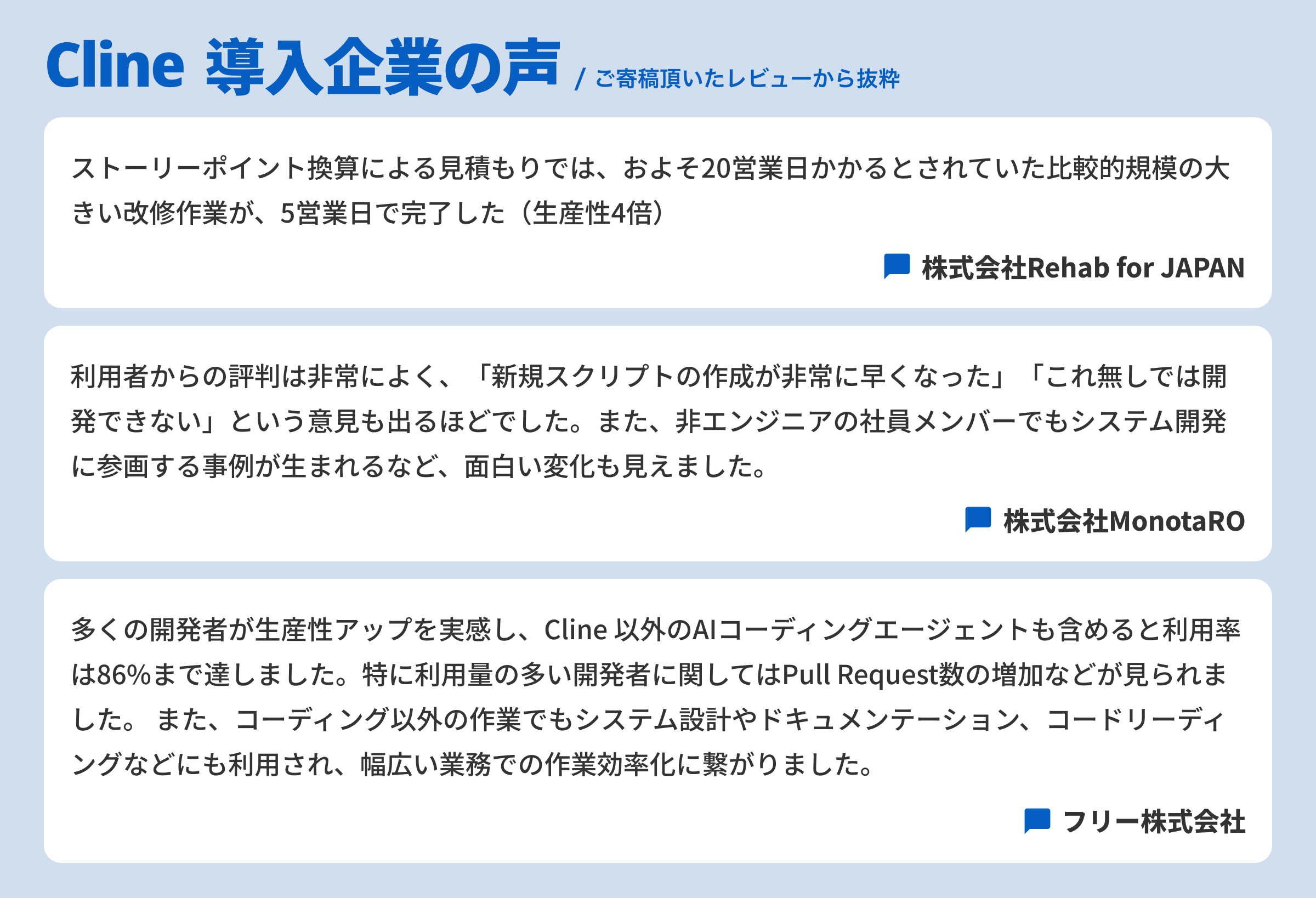 本記事では、2025年に市場で特に注目を集めた、5つのAI駆動開発ツールの活用事例を、Findy Toolsにお寄せ頂いたレビュー記事を元にまとめました。