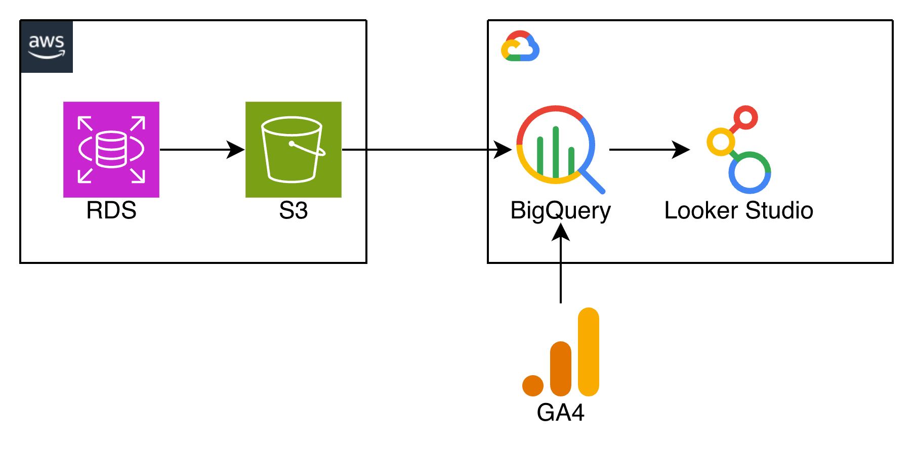 - 手法: RDSスナップショットエクスポート → Amazon S3 → BigQuery Data Transfer Service