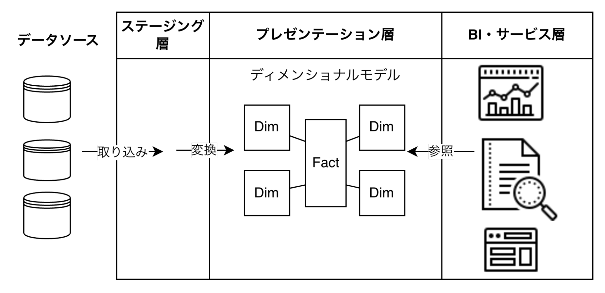 - ソーススキーマ変更が下流 (プレゼンテーション層/BI) に波及し、壊れやすくなる。