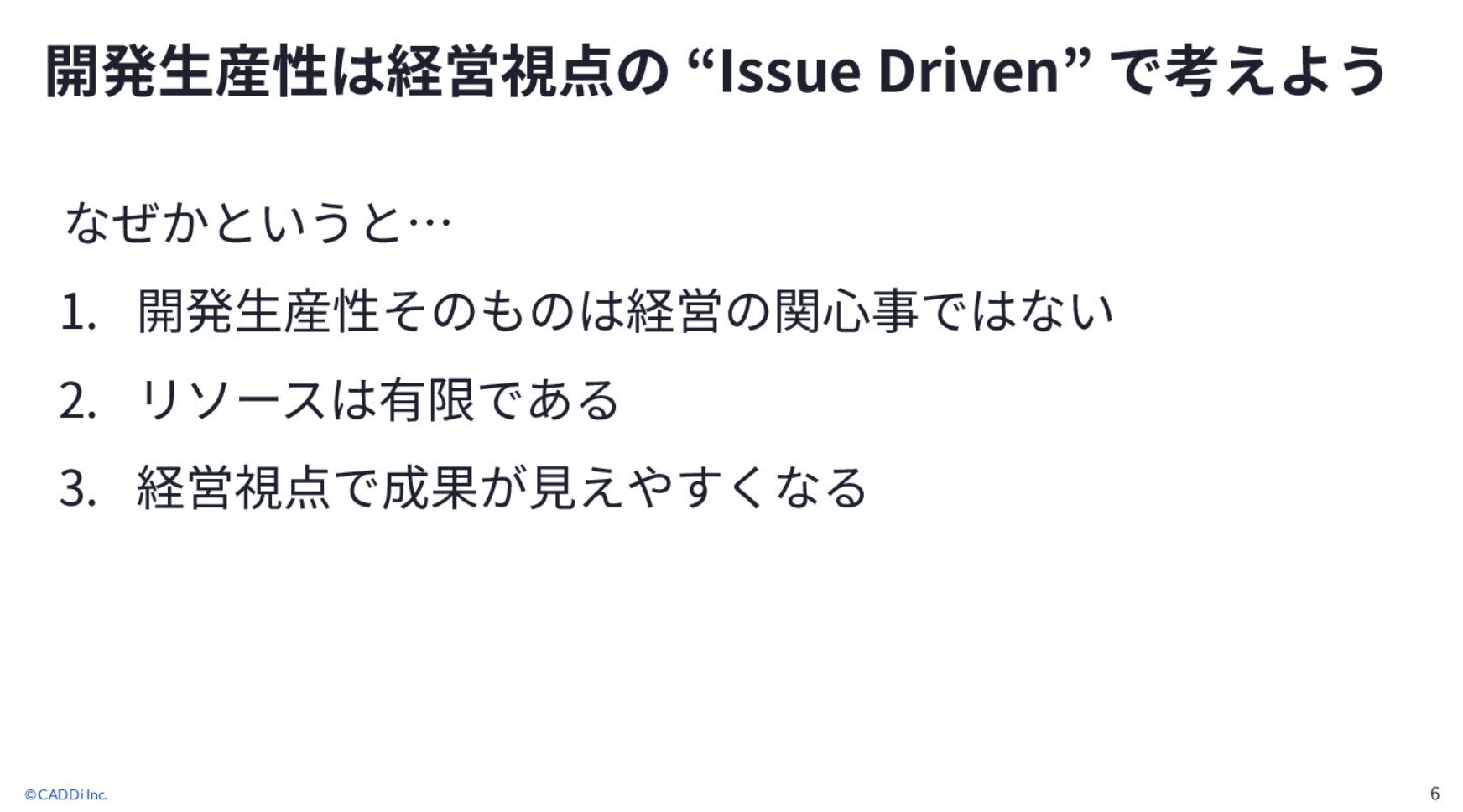 「開発生産性は経営視点のIssue Drivenで考えよう」