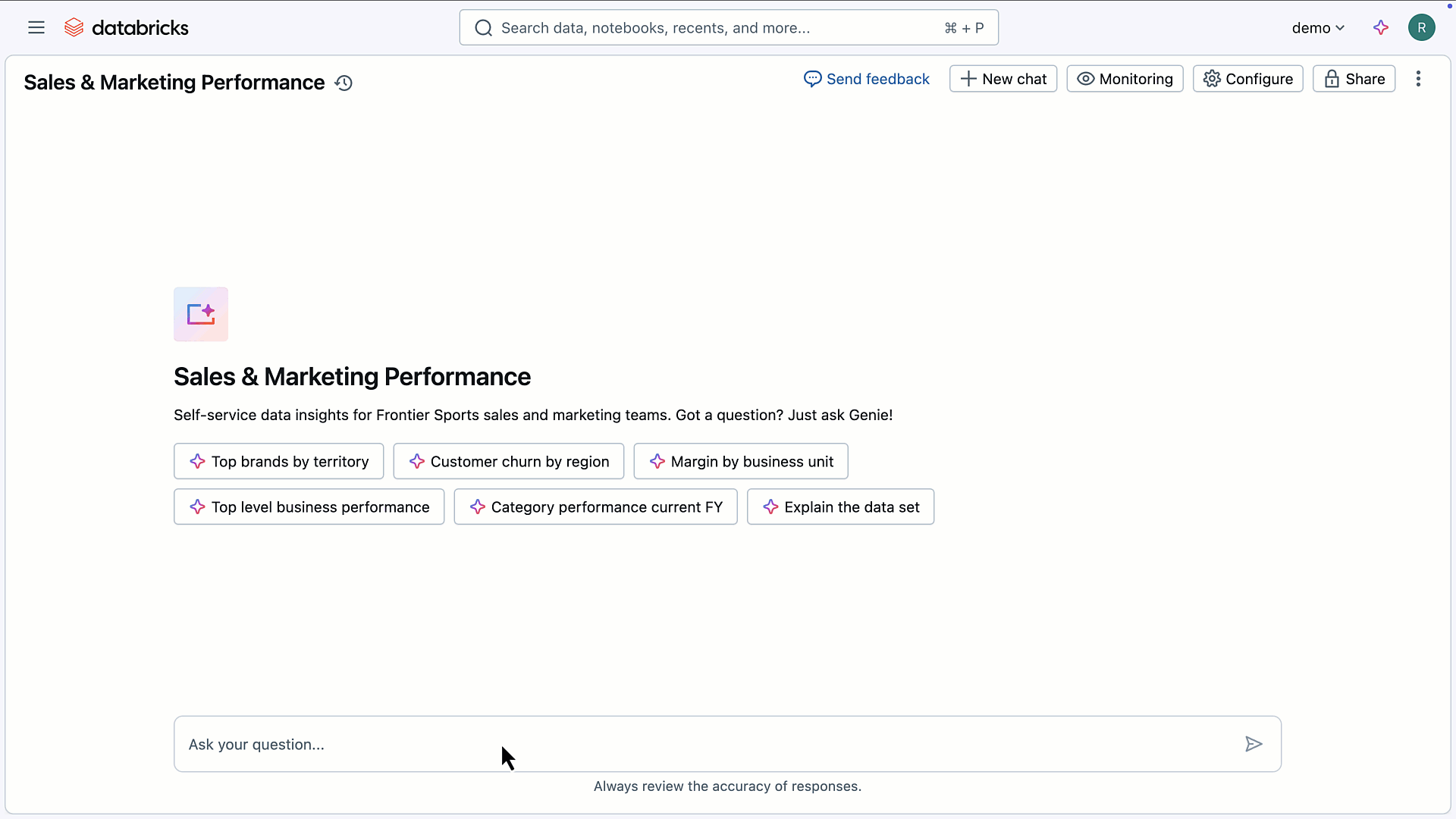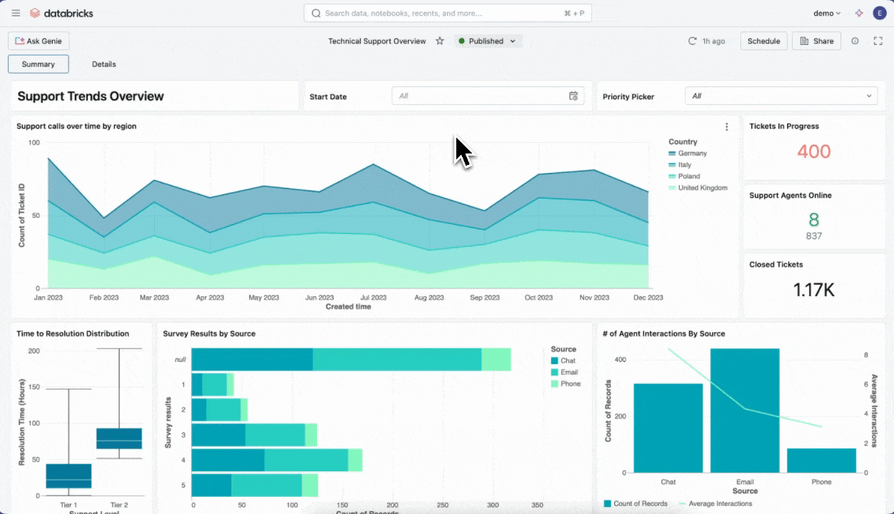 ブラジル最大級の小売企業「Grupo Casas Bahia」では、全社の営業・在庫・売上データをGenieで統合しています。例えば「今週の店舗ごとの売上傾向は?」「不正注文の兆候をリアルタイムで検知」など、部門を超えた質問に現場スタッフ・経営層・IT担当含め誰もが即時アクセスでき、従来は数時間〜数日かかっていたデータ集計が、Genieだとほんの数分で完了します。導入前に多発していた「専門家に頼まないと分析ができない」「データ依頼がIT担当に集中してパンク」という課題が解消されました。