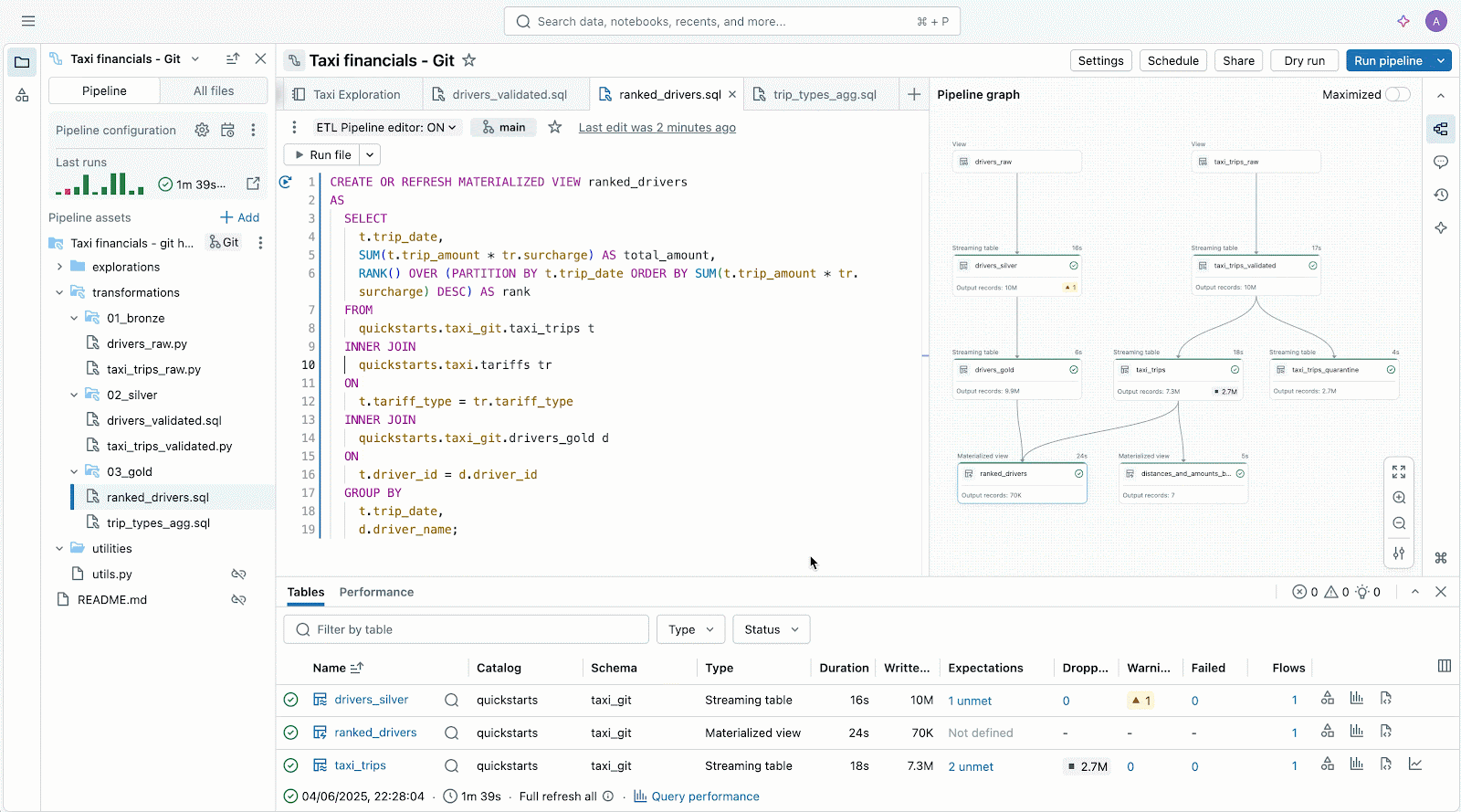Lakeflowを使うとバラバラになりがちな作業がすべて一つにまとめて管理されます。自動で「新しいデータだけを取り込む」といった処理をしてくれるので、「昨日の売上だけ抜き出して集計したい」「といったニーズにも簡単に対応できます。また、管理ルールや記録の履歴(リネージ)も自動で追跡できるため、「どのデータがいつどんな流れで使われたのか」もすぐ把握でき、安心してデータ連携やセキュリティ管理が行えます。