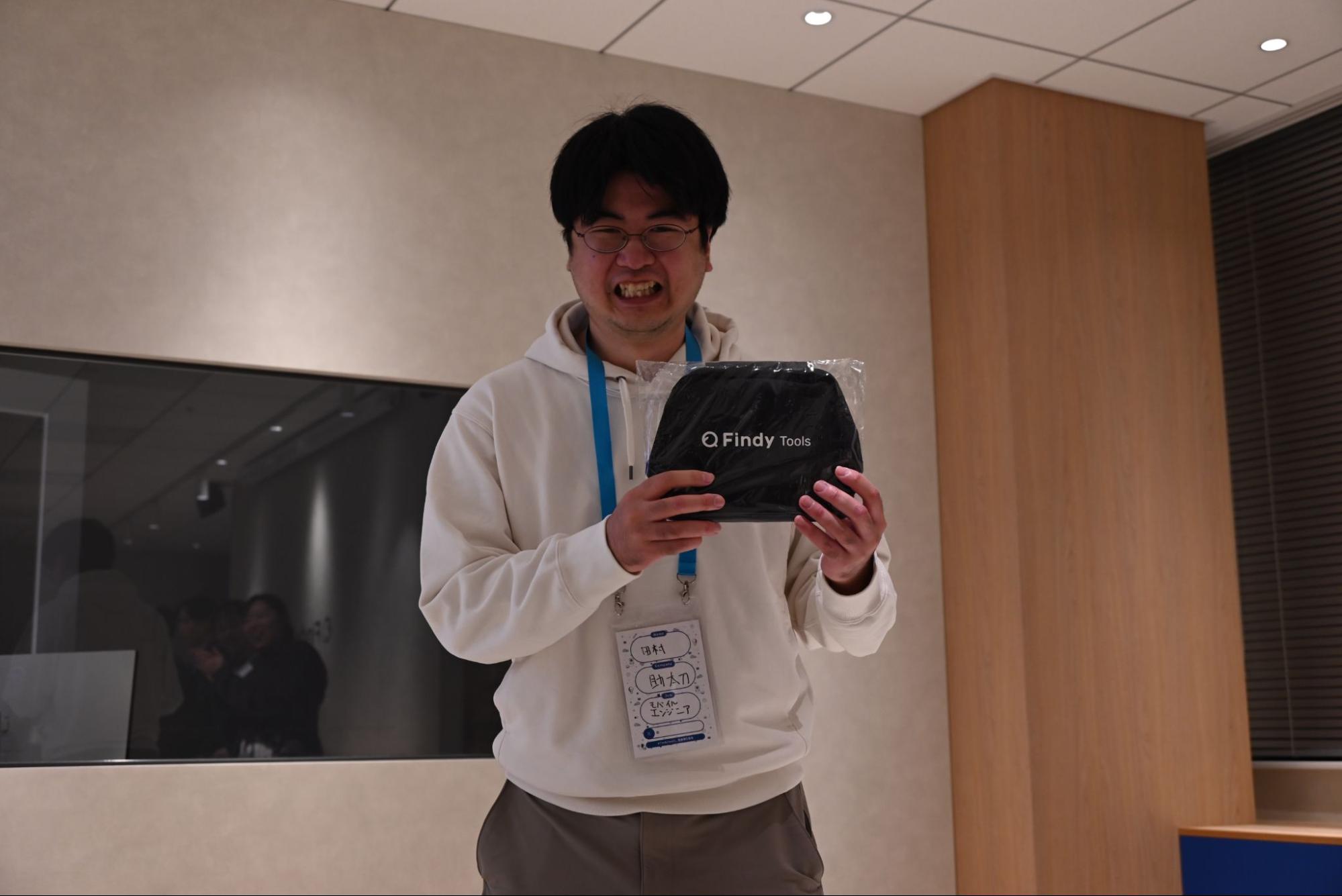 ルーレットで当たった4名の方には、Findy Tools特製のエンジニアお守りを3種類プレゼント。ラストワン賞では、Findy Toolsの名前とロゴが入ったスタンドポーチを贈呈しました。