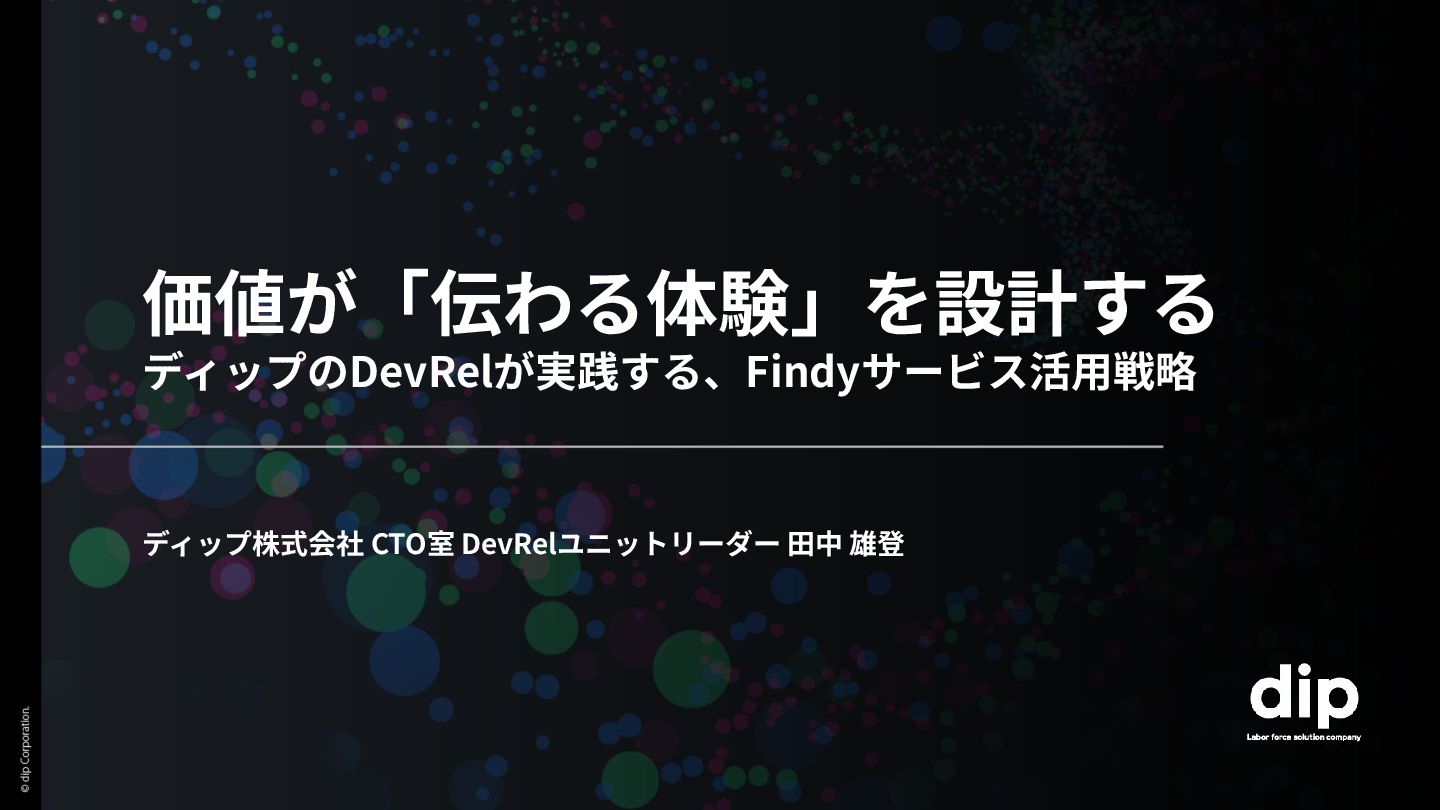 「 ディップのDevRelが実践する、Findyサービス活用戦略」田中 雄登さん