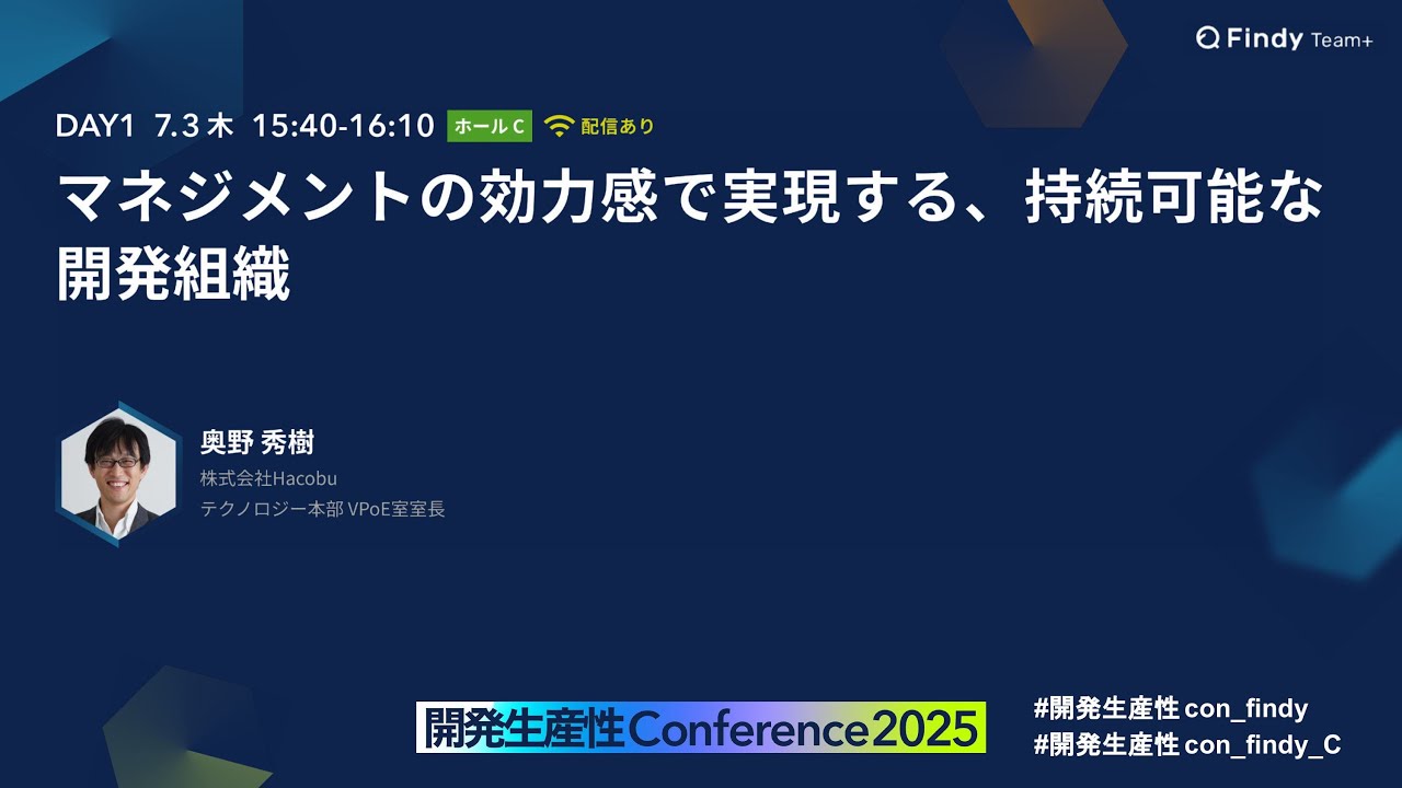 【開発生産性カンファレンス 2025】マネジメントの効力感で実現する、持続可能な開発組織