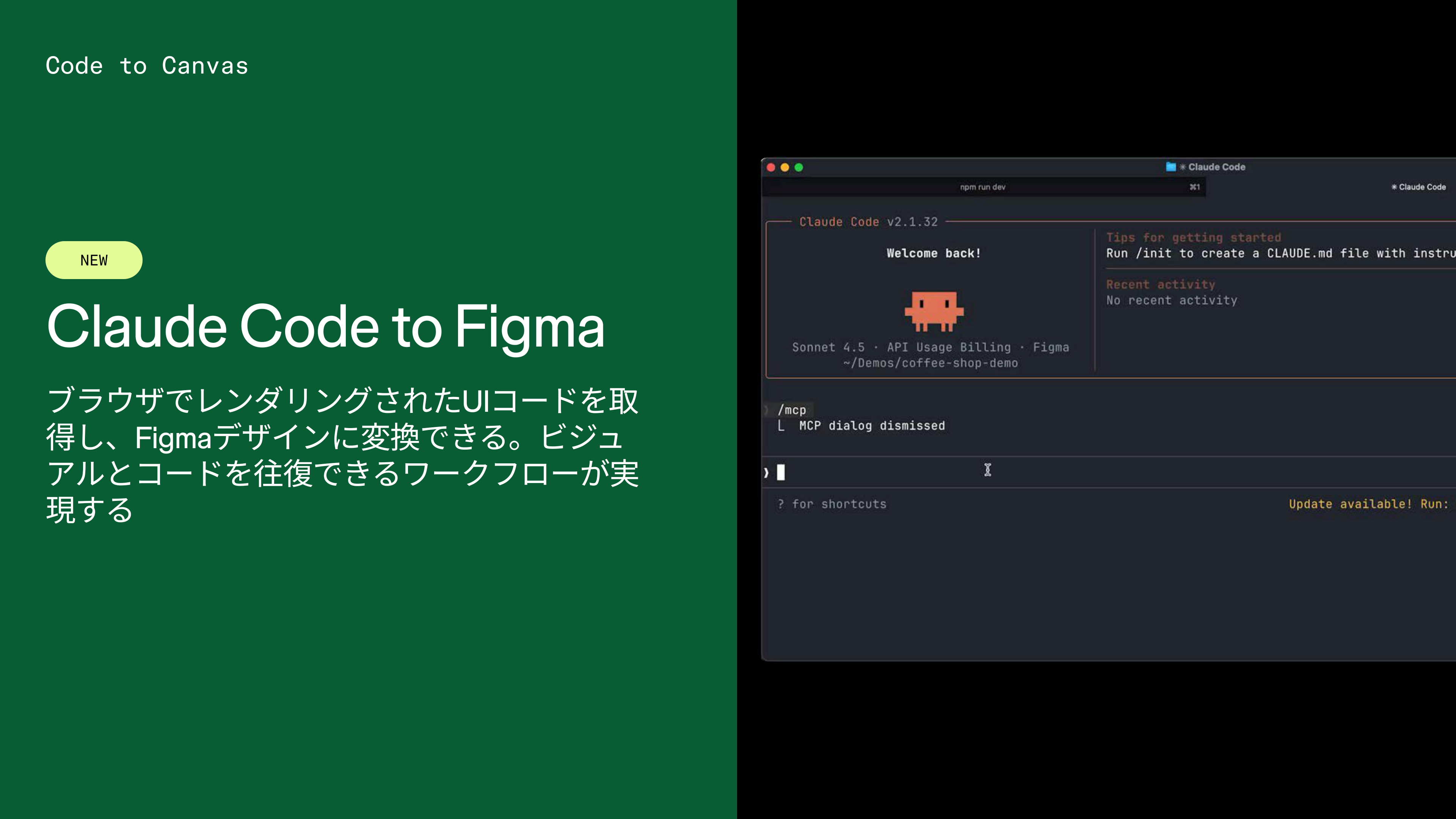 このようにデザインからコードへ、そしてコードからデザインへというイテレーションが実現し、開発プロセスの形が変わり始めています。現時点ではClaude Codeとの対応ですが、今後も対応範囲を拡大していく予定とのことです。コードからデザインという入り口ができたことによって、アイデアの元となるところがかなり広がり、可能性が広がっています。