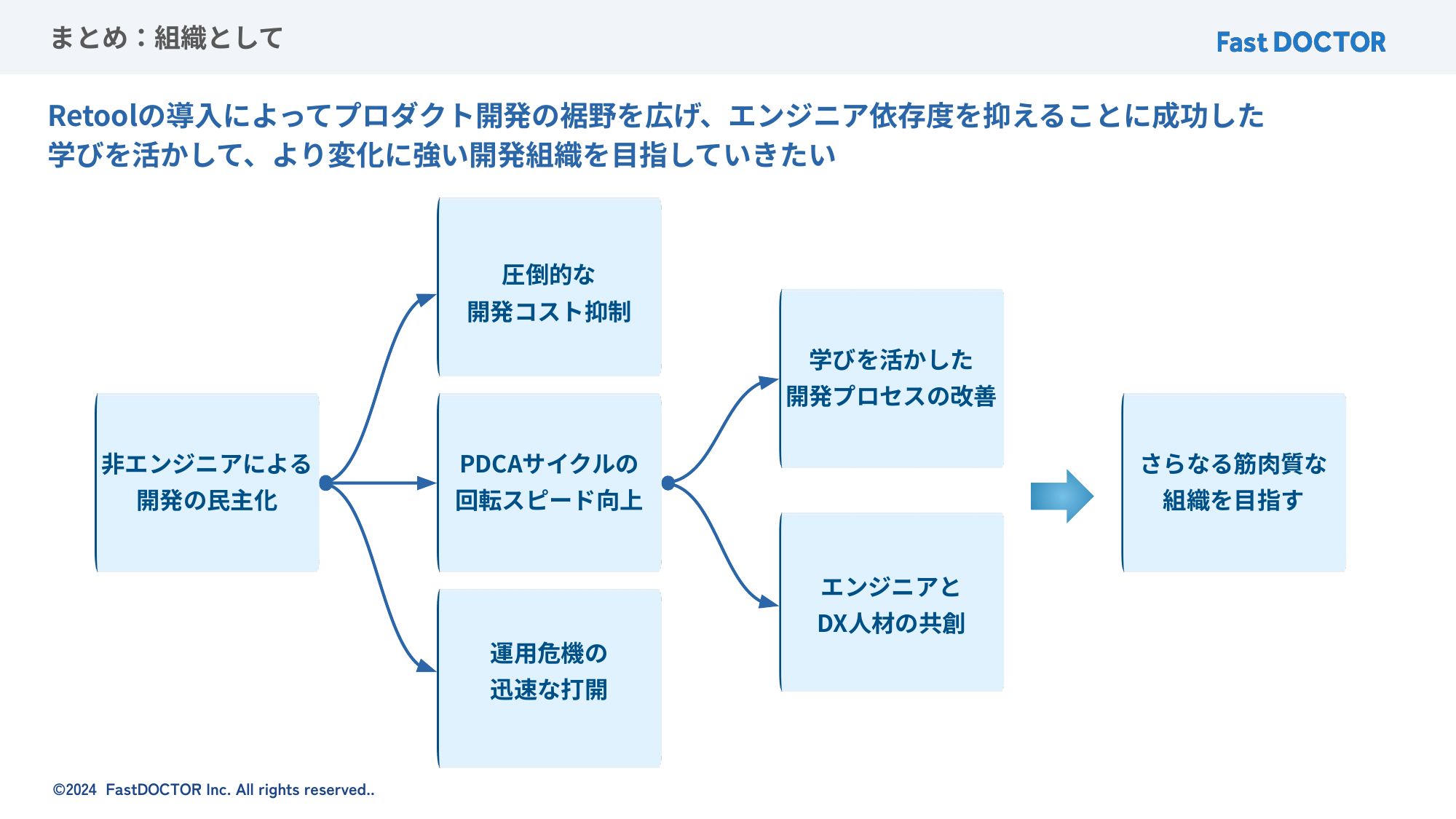 失敗から得た教訓を活かして、ローコードツールでの開発プロセスを改善し、エンジニアと非エンジニアがより共創していくことで、さらに強い事業組織とプロダクト開発組織を目指せると感じています。