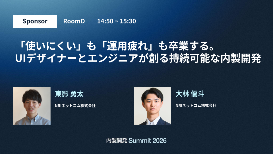 【内製開発Summit 2026】「使いにくい」も「運用疲れ」も卒業する。UIデザイナーとエンジニアが創る持続可能な内製開発