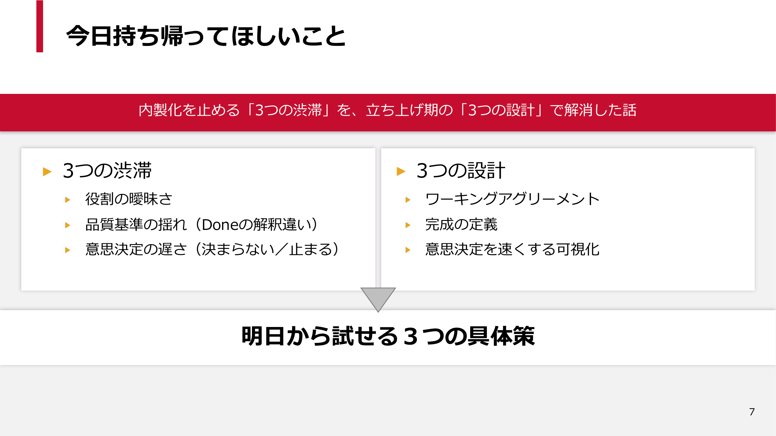 最後に、明日から試せる具体策を3つお持ち帰りください。