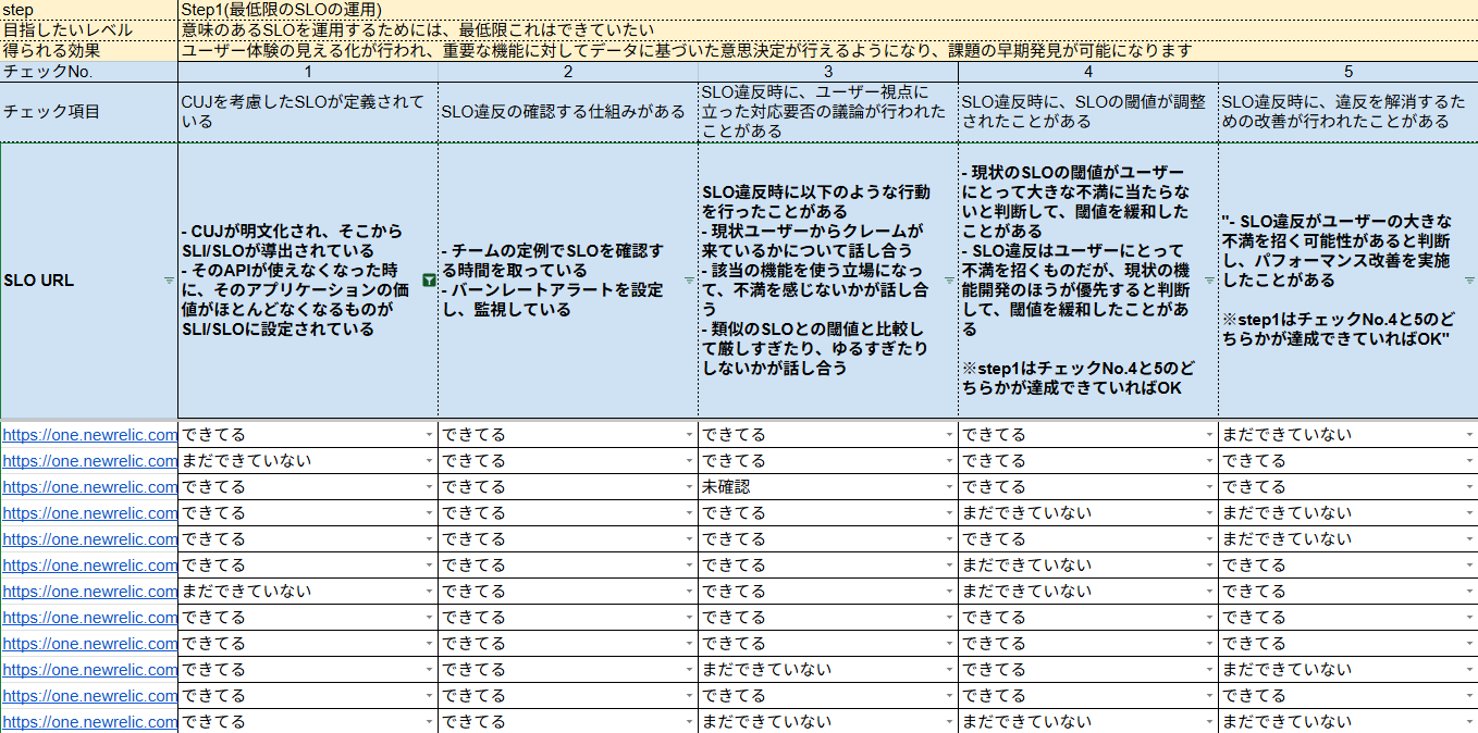 <実際に運用で使われている「SLO星取り表」のSTEP2>