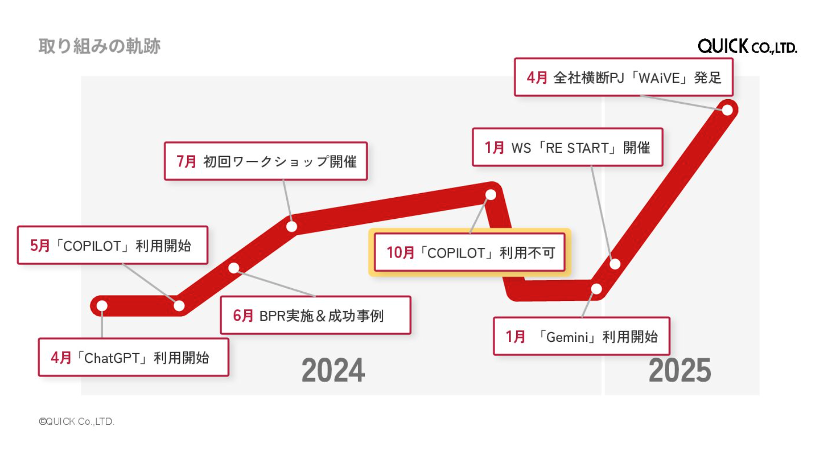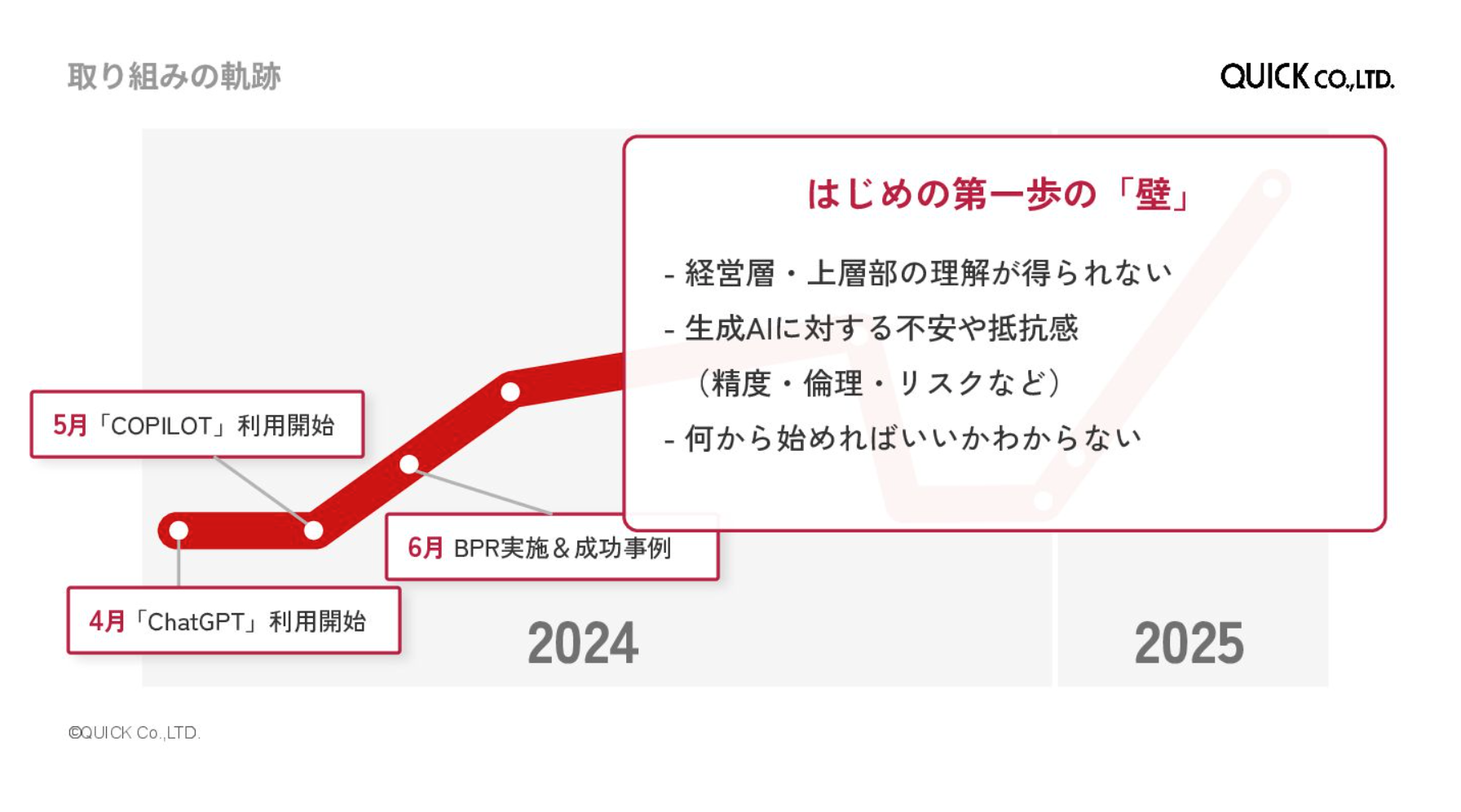 我々は2024年4月からChatGPTの利用を開始し、そこから現在に至るまで取り組みを続けています。