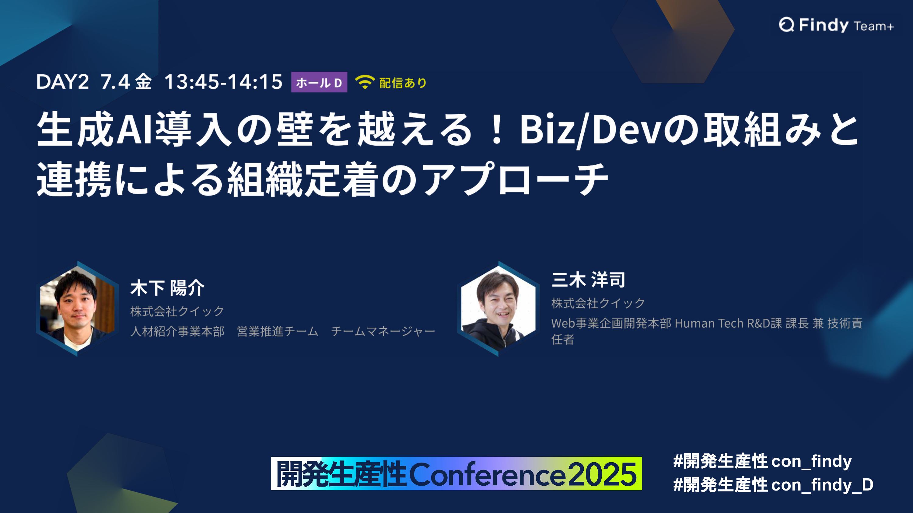 【開発生産性カンファレンス 2025】生成AI導入の壁を越える!Biz / Devの取組みと連携による組織定着のアプローチ